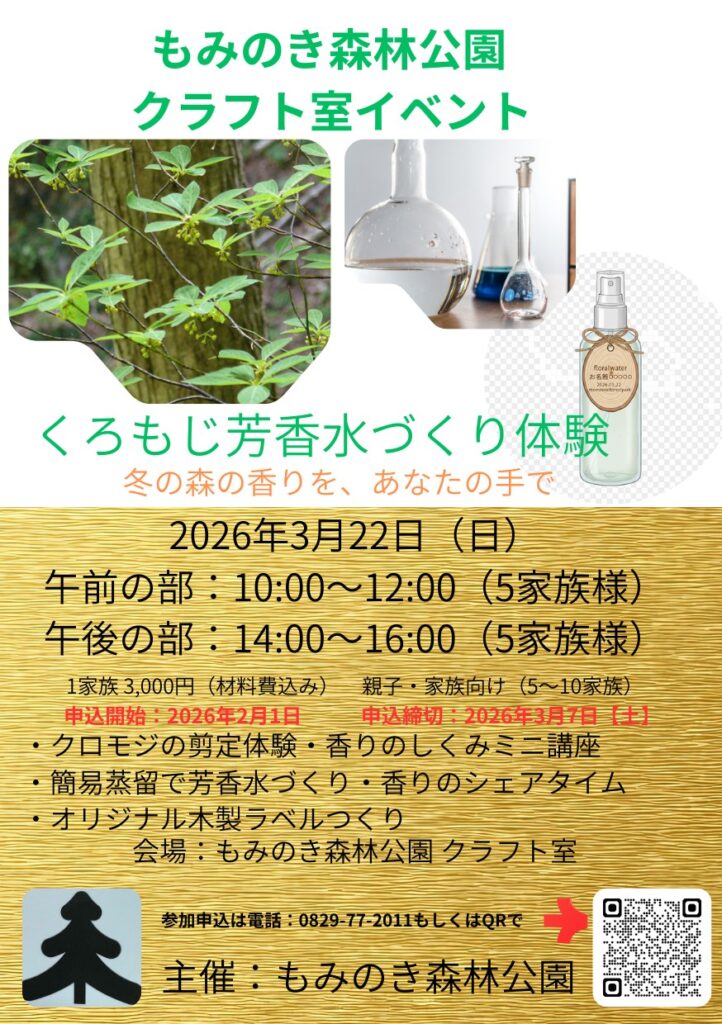 『くろもじ芳香水づくり体験』3/22㈰参加者募集